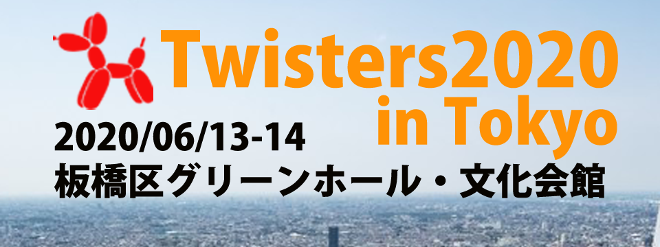 ツイスターズ2020 in 東京は、コロナウィルス感染拡大に伴う諸般の事情により、中止いたします。