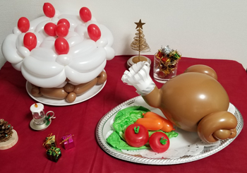 バルーンを使って美味しそうなケーキとチキンプレートを作ります。
